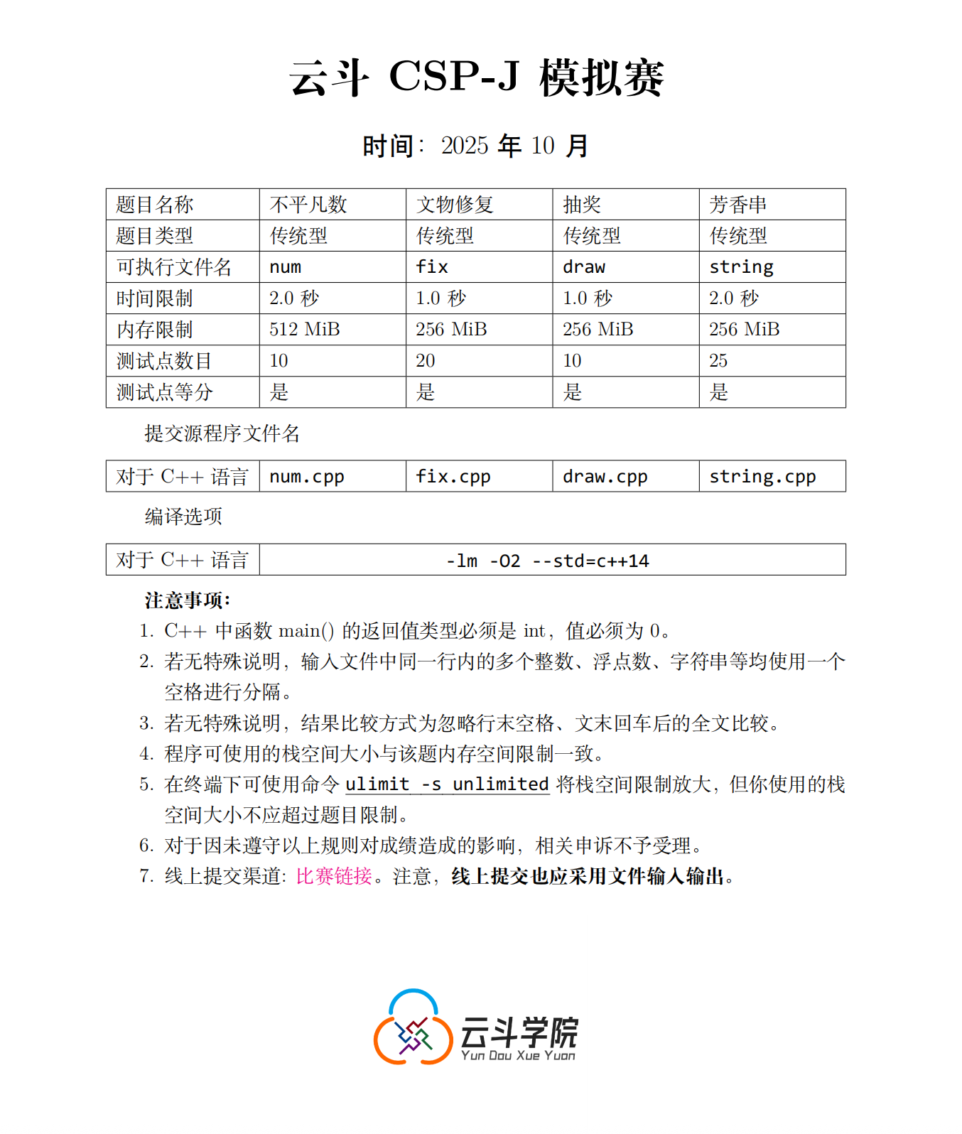 欢迎大家报名参加本次的 YDSP 2025 · 云斗 CSP-J 二轮(复赛)全真模拟!